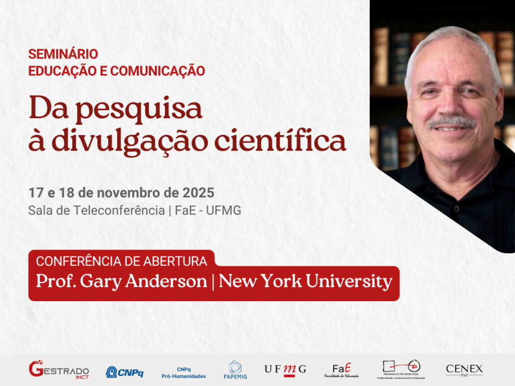 Nos dias 17 e 18 de novembro, a Frente Educação e Comunicação do Instituto Nacional de Ciência e Tecnologia Política Educacional e Trabalho Docente (INCT Gestrado), realizará o Seminário “Educação e Comunicação: da pesquisa à divulgação científica”. Na manhã da segunda-feira, 17 de novembro, acontece a Conferência de Abertura “Quem fala sobre educação na mídia? O lugar da universidade na formação de opinião”, ministrada por Gary Anderson, professor emérito da…