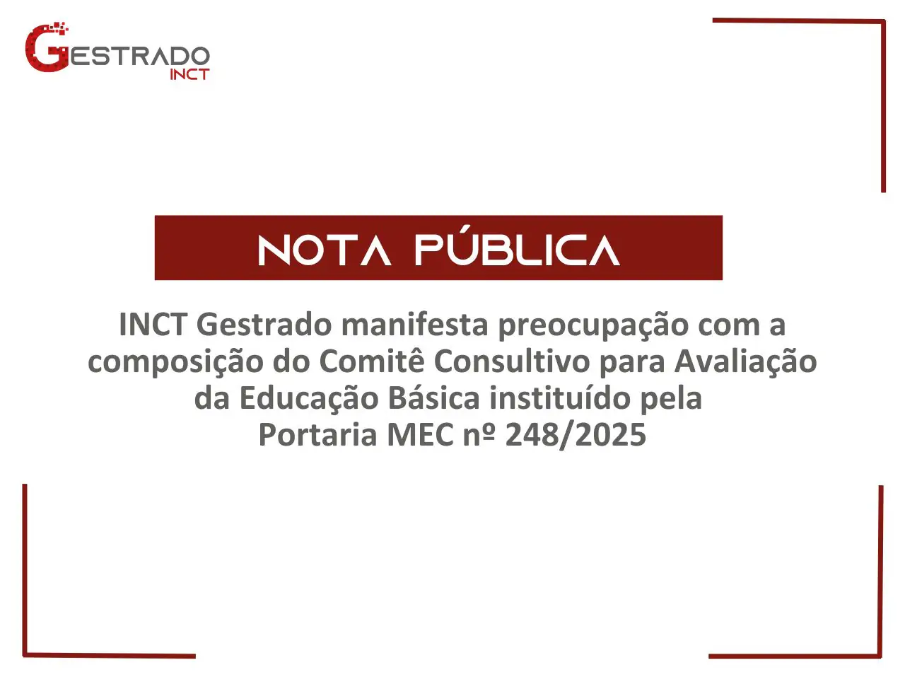 No dia 11 de abril, o Instituto Nacional de Ciência e Tecnologia Política Educacional e Trabalho Docente, rede de pesquisa composta por mais 100 pesquisadores vinculados a cerca de 30 instituições e comprometida com a produção de conhecimento qualificado para fortalecimento da escola pública, manifestou preocupação com a composição do Comitê Consultivo de Especialistas para o Aperfeiçoamento de Avaliação da Educação Básica instituído pela Portaria MEC nº 248, de 08