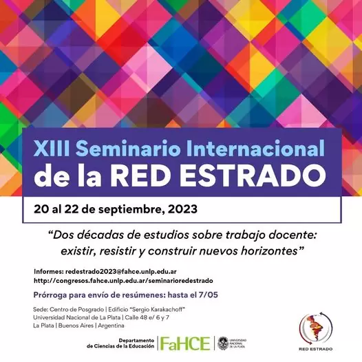 O prazo de recebimento dos resumos foi prorrogado para 7 de maio de 2023. Os resumos podem ser enviados em espanhol ou português. Sobre o Evento A Rede de Estudos sobre o Trabalho Docente (Red ESTRADO) e o Departamento de Ciências da Educação da Faculdade de Humanidades e Ciências da Educação da Universidade Nacional de La Plata (FaHCE/UNLP) convidam você a participar de seu XIII Seminário Internacional da Rede ESTRADO