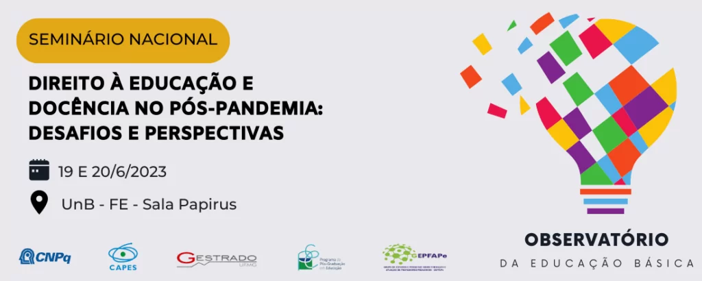 Seminário Nacional “Direito à educação e docência no pós-pandemia: desafios e perspectivas” acontecerá nos dias 19 e 20 de junho, na UNB